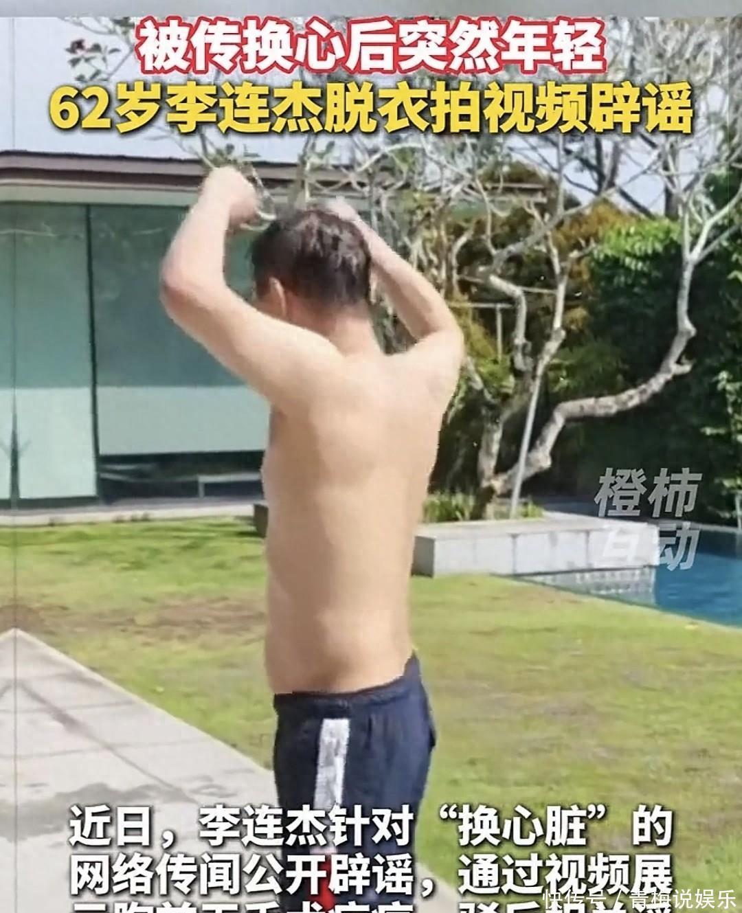 李连杰最近上热搜是因为脱了衣服,不是拍新戏也不是做活动,就是为了辟谣说他换心脏的事,直接在泳池里赤膊游泳,胸前没疤,把谣言给怼回去了。